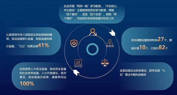 优化调整设置政府机构27个,撤减乡镇10个、行政村82个。获评全国“七五”普法中期先进集体。“三公”经费压减41%。大力支持工会、妇女儿童、青少年、老龄、红十字会等工作,粮食、市志、档案、气象、人防、台侨、民族宗教等工作取得新成效,全国双拥模范城市实现4连冠、省双拥模范城市实现6连冠。