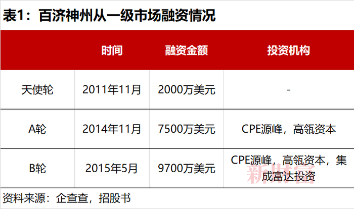 2013-2015年,百济神州经历天使轮、A轮、B轮融资,总共募资1.92亿美元(表1)。