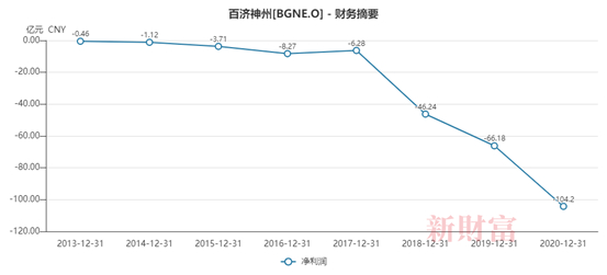 2020年百济神州营收仅为21.2亿元,是研发投入的1/4,净亏损则高达114亿元,这意味着2020年,其每日平均亏损3125万元,相当于3天亏1亿。