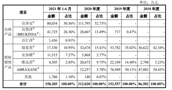 2020年,百泽安创造的营收高达11.2亿元,给百济神州贡献了超50%收入,2021年上半年再次创收8亿元,显现出良好增速;其次是百悦泽,2020年创收2.9亿元,2021年上半年更是创收达4亿元;百汇泽目前的收入占比尚不到1%。