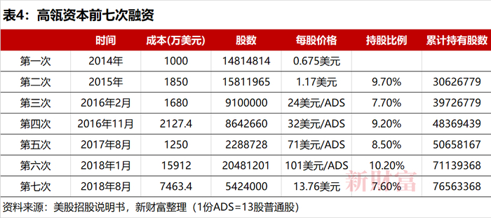据美股招股说明书,2014年百济神州完成7449万美元的A轮融资,高瓴以每股0.675美元认购了14814814股A系列优先股,花费1000万美元。彼时,中信产业基金亦参投1000万美元。