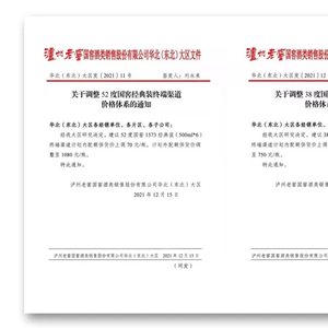 上述通知显示,经泸州老窖国窖酒类销售股份有限公司华北(东北)大区决定,建议52度国窖1573经典装(500ml*6)终端渠道计划内配额供货价上调70元/瓶,计划外配额供货价调整至1080元/瓶;38度国窖1573经典装(500ml*6)终端渠道计划内配额供货价上调40元/瓶,计划外配额供货价调整至750元/瓶。