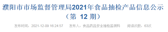 河南省濮阳市市场监管局公示120批次餐饮食品抽检信息