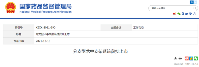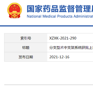 近日,国家药品监督管理局经审查,批准了上海微创心脉医疗科技(集团)股份有限公司生产的创新产品“分支型术中支架系统”注册。