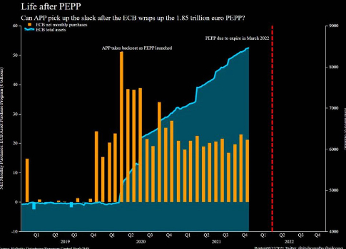 欧央行曾表示,至少在2023年底之前,如果疫情恶化,将继续对紧急抗疫购债计划(PEPP)的到期证券的本金进行再投资。