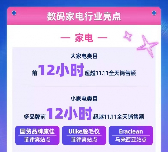 除了直播营销外,PONGO通过红人短视频种草、社媒投放、PongoShare联盟营销等方式实现为品牌商家店铺引流,提升他们的销售业绩。以小米生态链公司Eraclean为例,通过PONGO的全案营销策划,该品牌仅用12个小时就实现了双11当天的销售业绩,荣登Lazada数码家电商业亮点清单。