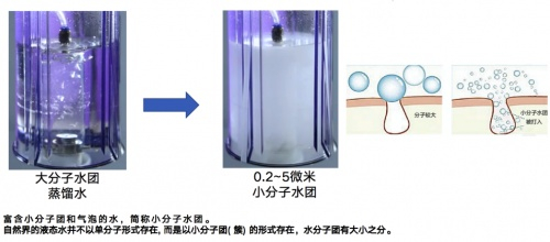 小分子团簇变小,视觉上会从透明变成牛奶,水的溶解力、渗透力、代谢力、扩散力、乳化力均有所增强,从而具有一定的“活化”作用,在一定程度上可以增强生物体的新陈代谢、血脂代谢、酶活性以及免疫功能,因此,这样的水也被称为活化水 。