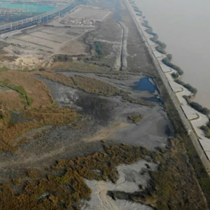 此外,2013年以来,龙门镇部分未经处理的污水流入该区域形成较大水面。卫星影像显示,2021年2月污水面积仍达78亩,遗留大片灰黑色污泥。经监测,污水氨氮浓度为19.9毫克/升,超地表水Ⅲ类标准19倍。8份固体废物样品中,7份浸出液pH值超标,严重威胁黄河水质。