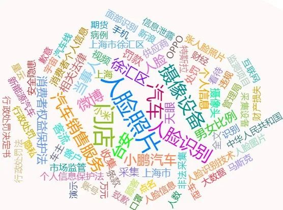 梳理相关媒体对此事件的报道高频词可知,“人脸照片”“门店”“摄像设备”“汽车”“徐汇区”“汽车销售服务”等词汇的热度较高,媒体议题高度集中,舆论普遍对小鹏汽车违规采集人脸数据的行为持负面态度。