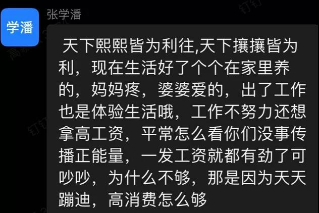 据发帖员工称,这次员工的抱怨引发公司内部大战,有疑似茶颜悦色高层称:“为什么不够,那是因为天天蹦迪,高消费怎么够……德不配位,必有灾殃,你有多大本事拿多少钱”。