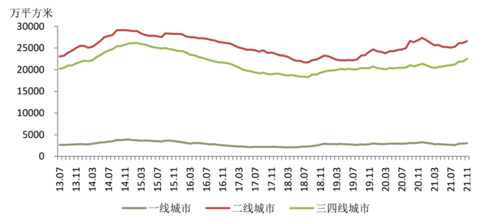 一、二、三四线城市新建商品住宅库存面积