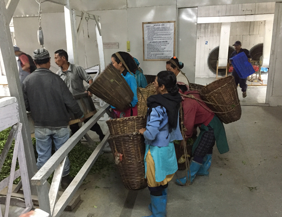 ●在大吉岭的茶厂,辛苦劳作了一天的茶工们正在等待“鲜叶过磅”,鲜叶历经4道加工工序后便可打包运往欧美国家,并在那里进行最后的包装上市。