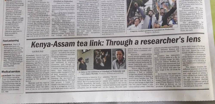 ●阿萨姆当地报纸对James的图片展的报道:“从研究者的镜头,看肯尼亚-阿萨姆的茶叶链接”。