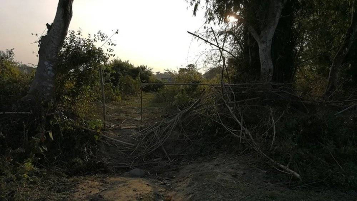 ●通往茶园的围栏被大象踩破。