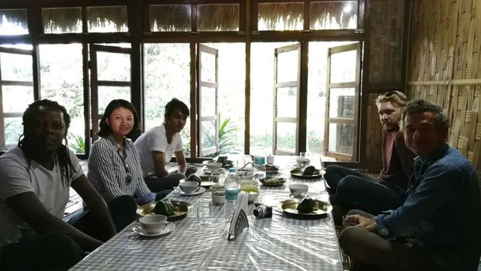 ●阿萨姆田野考查5人组,依次为:James(肯尼亚艺术家)、肖坤冰(西南民族大学人类学家)、Henry (印度塔塔社会科学研究所硕士研究生)、Samuel(牛津大学人类学博士,研究员)、Beppe(斯德哥尔摩大学人类学家)。