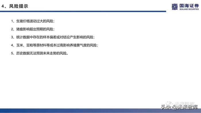 长期配置价值凸显,看好具有成本和扩张优势的公司。从基本面来看,猪价再次回落筑底概率较大,伴随着能繁母猪产能去化,并带来未 来行业拐点的到来,尽管如此,对于部分生猪养殖公司已具有长期配置价值,成本端能看到有显著下降空间、出栏量拥有快速扩张潜力的 公司依然能够穿越下行期取得成长。