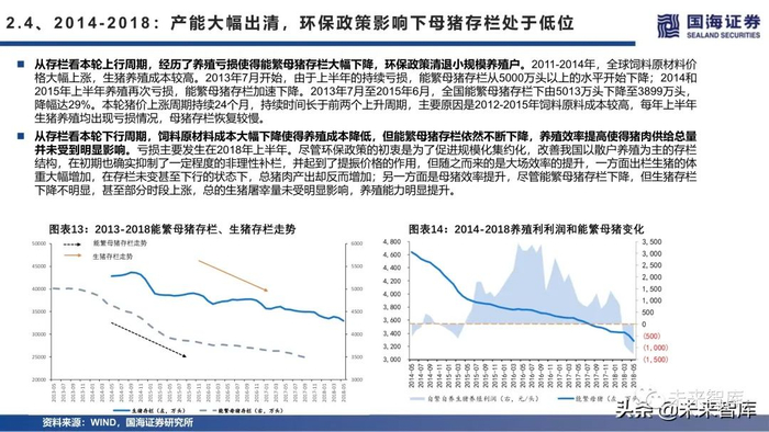 4、2014 - 2 0 1 8:产能大幅出清,环保政策影响下母猪存栏处于低位