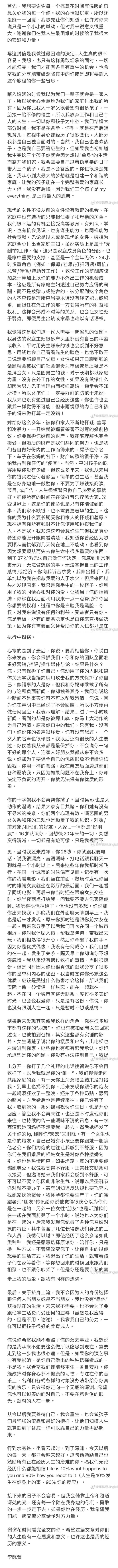 (向下滑动阅读)李靓蕾还称遭到王力宏家庭冷暴力,婚前签订财产协议,婚后转移财产。