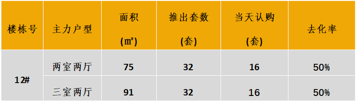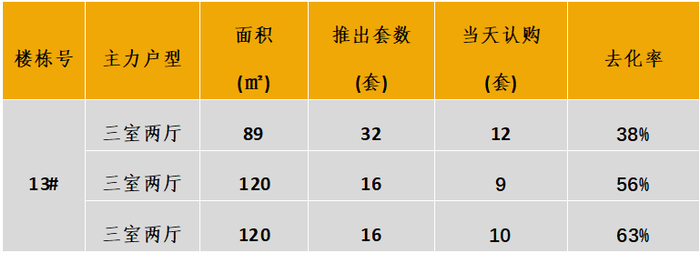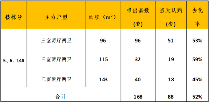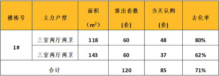 本次推出户型面积及开盘当天认购去化情况