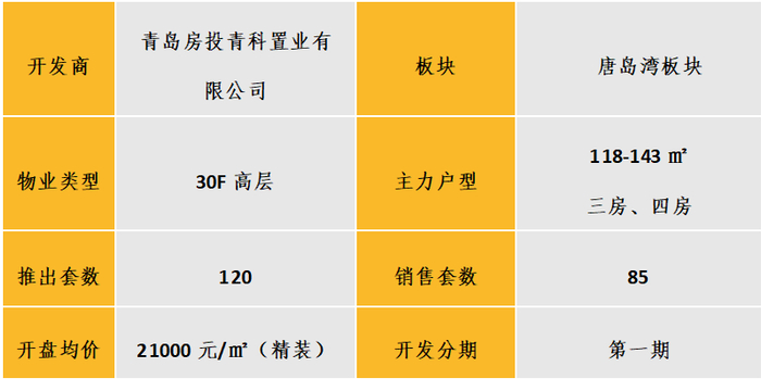 认购去化:2021年11月25日项目首开1#,30F高层共计120套房源,精装交付,均价21000元/㎡,总体去化率71%