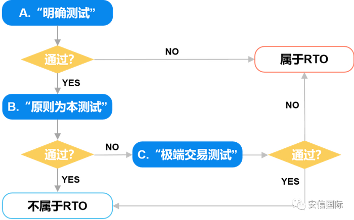 判定是否属于RTO,需要通过三关测试,包含「明确测试」、「原则为本测试」和「极端交易测试」。其中,「原则为本测试」有较多的主观综合考量,在交易中更需慎之又慎,避免被判定为RTO。