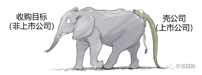 反向收购(Reversetakeover,RTO),通常也被称为「借壳上市」,是指非上市公司股东通过收购一家上市公司(壳公司)的股份来控制该公司,再由壳公司反向收购非上市公司的核心资产和业务,从而实现间接上市的目的。由于壳公司通常业务量较小,这个过程也被形象地成为「蛇吞象」。
