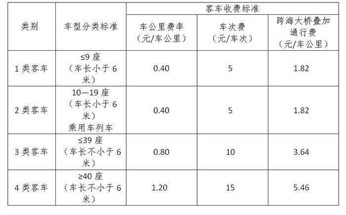 客车车辆通行费=车次费+车公里费率×车辆实际行驶里程数+隧道(桥梁)叠加通行费。