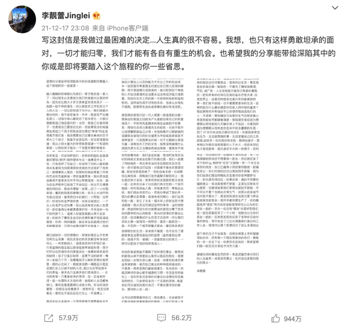 12月17日深夜,王力宏前妻李靓蕾在微博发5000字长文控诉其召妓、出轨、催生……信息量很大,该条微博也迅速冲上了热搜。