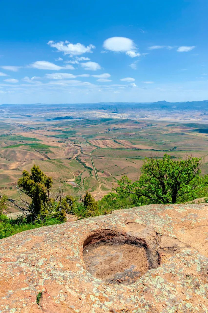 这片山脉曾被厚厚的第四纪冰川覆盖,大面积的冰体形成了冰盖。冰盖缓缓前行,从山地移向东部的平原。冰盖之下,冰川融水携带着山谷两岸卸下的岩块向前流动,岩块不断撞击周围的岩石,在低洼处形成一个个凹坑,即岩臼。