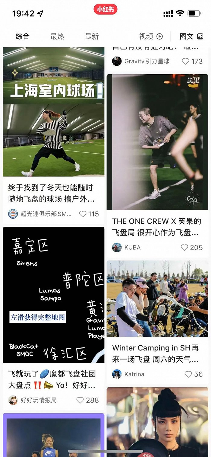 而在最能体现年轻人日常关注趋势的小红书平台上,以「飞盘」为关键字搜索,能够轻易看到上万篇相关内容。有网友表示,几个人一个飞盘,能大汗淋漓的玩上几个小时,自由的快感,奔驰的乐趣,全都藏在这个小小的盘子上。