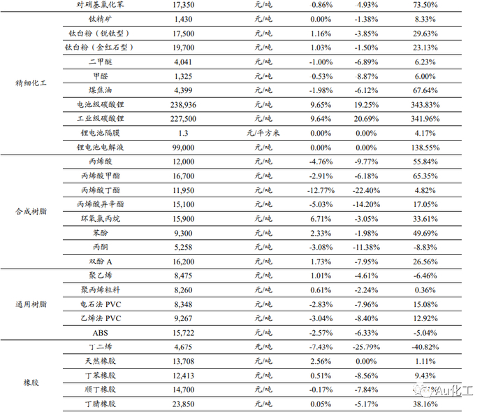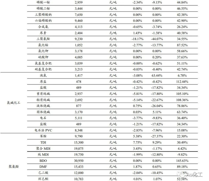 本周化工行情跟踪及事件点评:化工品价格涨跌互现