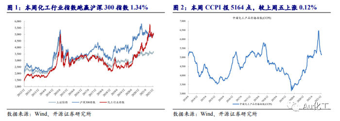 2.1、本周化工行情跟踪:化工行业指数跑赢沪深300指数1.34%