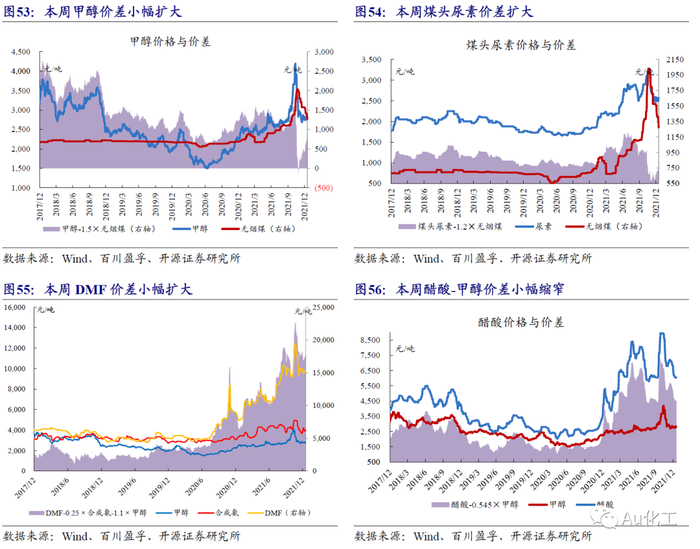 4.1.4、煤化工、有机硅产业链:煤化工产品价差涨跌互现