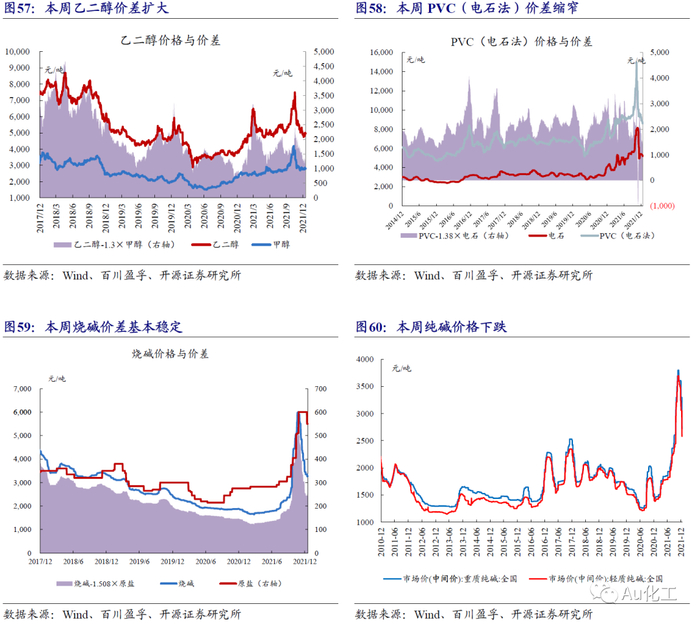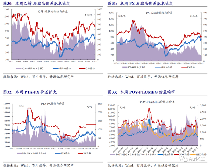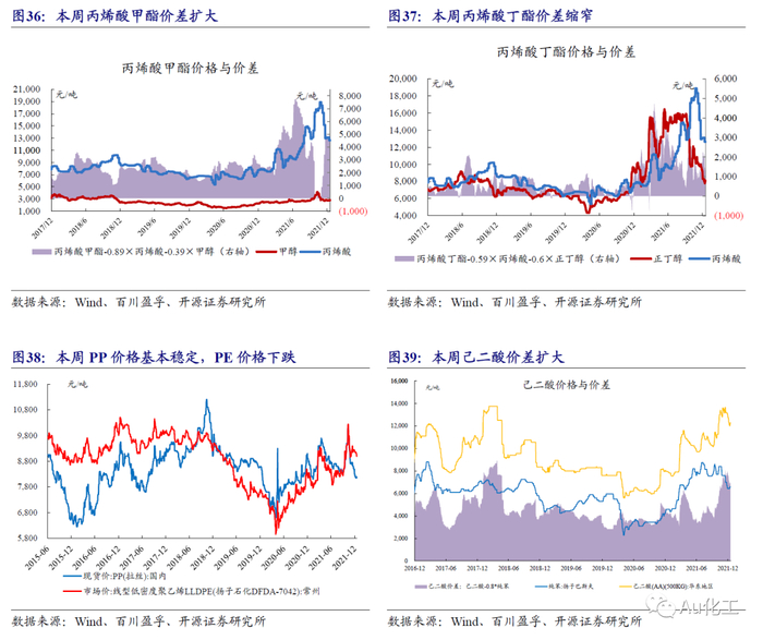 4.1.1、石化产业链:产品价格与价差涨跌互现