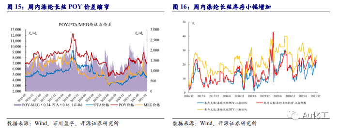 2.1.2、化纤:织机开工率小幅下滑,化纤价差普遍缩窄