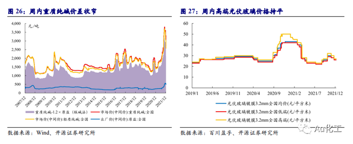 纯碱:本周(12月13日-12月17日)国内纯碱市场价格继续下滑。根据百川盈孚数据,周内国内轻质纯碱多数企业报盘走低100-400元/吨,重质纯碱多数企业延续以单议价,实单成交价格走低。本周国内纯碱市场部分厂家负荷下降,供应量有所减少,但多数厂家库存继续呈现增加趋势,出货压力继续加强。据百川盈孚数据,截至12月16日,轻质纯碱市场均价为2692元/吨,较上周-5.14%;重质纯碱市场均价为2937元/吨,较上周-5.81%。