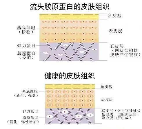 皮肤里的水分会在空气中流失,胶头是胶原蛋白,也会慢慢地变形解体。这个时候我们皮肤保湿功能降低老化,同时角质也会加厚一些屏障功能,也会慢慢变得越来越弱。