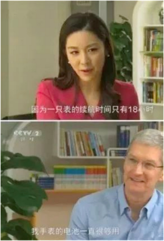 斯璇是苹果CEO Tim Cook唯一一次接受中国电视媒体采访的主持人,除了那个火爆全网的“续航18小时,你每天睡四小时,那么你是否需要两块苹果手表的问题”,斯璇也是一个真挚的引人共情的采访者,在这段采访中,印象中总是带着专业微笑的库克谈到不少从未公布过的细节,在谈论与乔布斯最后相处的时光时更是眼眶湿润,可惜部分的谈话内容因可能影响到公司股价等敏感原因最后没有得到释放。