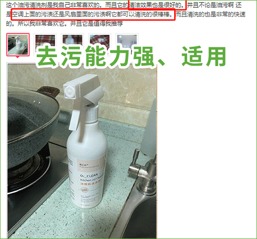 原本布满油渍的排气扇,喷上去瞬间溶解滴落,一抹亮到反光!(不说了,立刻去叫房东给我减房租