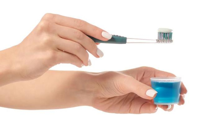 因为牙齿的食物残渣只有刷牙后才能彻底清除,仅仅通过漱口水是不可能彻底清除脏东西的。并且使用漱口水后,半小时内尽量不要再刷牙或者使用清水漱口,因为此时我们的口腔内依旧存有残留的漱口水,可以继续抑制口腔内的细菌。