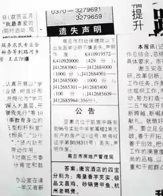 刊登在《商丘日报》上的一批出生医学证明丢失作废声明