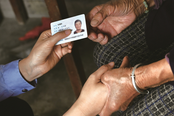 送身份证上门,祁奶奶紧紧地抓住小刘的手不放,激动得许久说不出话。