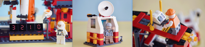 不只是单一的飞机和火箭,这个发射中心包含发射指挥中心、发射平台、火箭发射器、航天飞机、巡检车等,还有4个宇航员人仔。