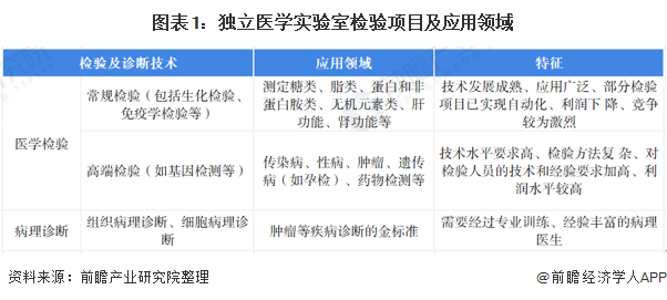 独立医学实验室指在卫生行政部门许可下,具有独立法人资格,独立于医疗机构之外、从事医学检验或病理诊断服务,能独立承担相应医疗责任的医疗机构,利用其集约化经营、专业化分工等优势为各类医疗机构提供专业高效的医学检验及病理诊断服务。目前,我国独立医学实验室的检验主要分为医学检验和病理诊断。