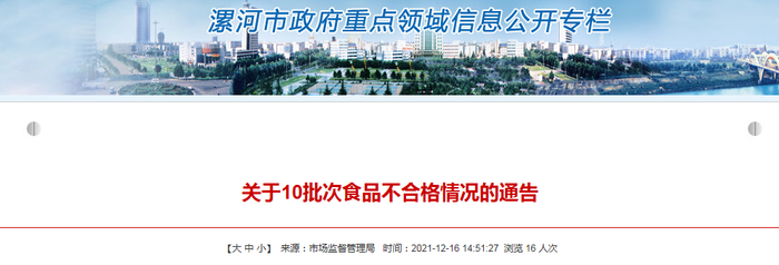 河南省漯河市市场监管局关于10批次食品不合格情况的通告