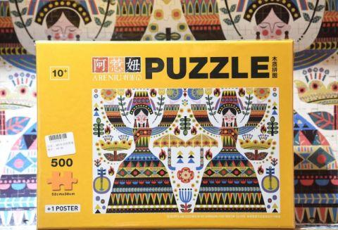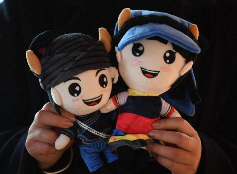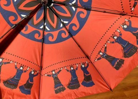 “T恤和拼图上的‘阿惹妞’就是小表妹,也有心上人的意思;黑红黄三色绣品的颜色是因为彝族将黑色视作土地,黄色代表太阳和丰收,红色则代表热情,这也是彝族文化中最有代表性的三个色彩元素;担心几代人后文字被遗忘,推出了《佳佳嫫涂色绘本》,通过简单的绘本传承彝文;结合了苏州掐丝工艺的漆刻画,一幅画的制作周期要三到六个月,基本都是订单制;彝绣系列则是以购代捐的形式,跟农村的绣娘合作,采购绣片制作笔袋、笔记本等产品;印有跳舞女孩的黄色雨伞在旋转起来则很像彝族年节时大家手牵手跳起达体舞;仿彝族漆器的花纹配色制作的陶瓷制品,降低了生产周期和成本。”郑瑶介绍道。