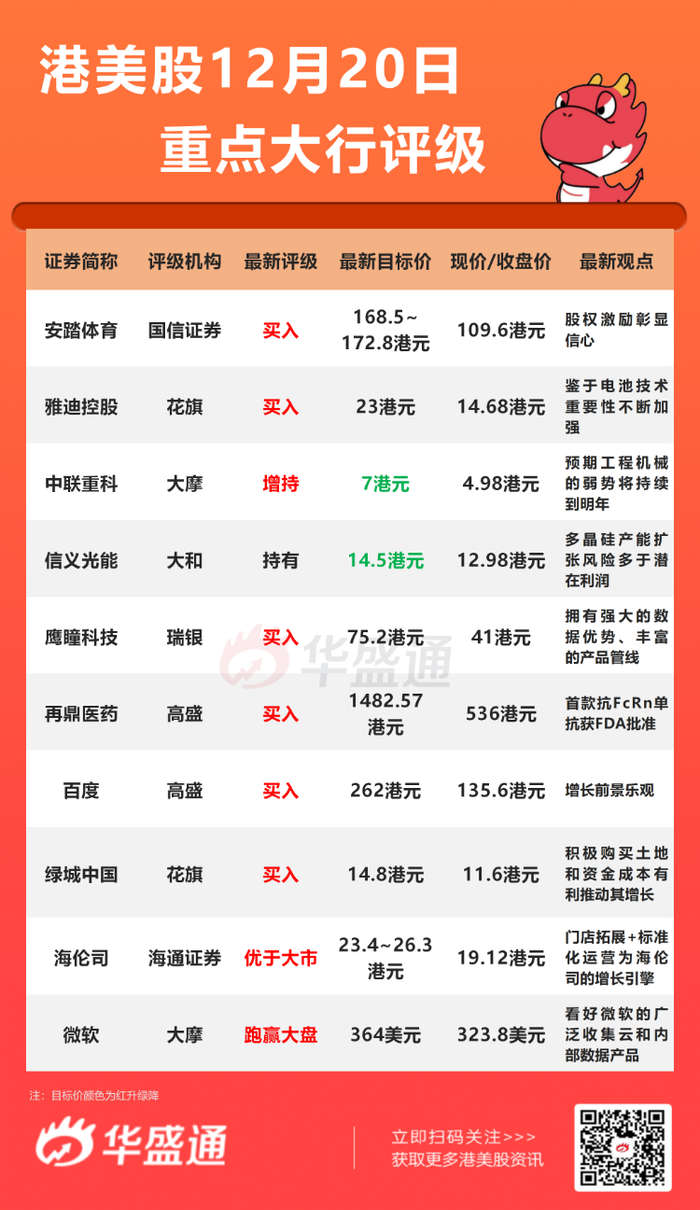 原标题:大行评级丨目标价看涨177%!高盛力荐再鼎医药,看好百度增长前景