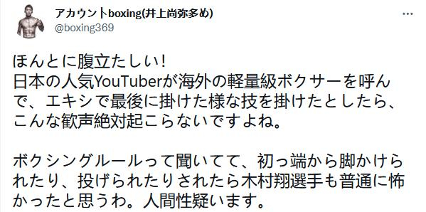 赛后,玄武还将KO视频发到网上,留言称“中国打日本还需要规则吗?他不死我睡不着觉啊!”,并称批评他的网友是“汉奸”。而今天(20日)在微博和Twitter同步向粉丝报平安的木村翔却表示,“世界上任何一个国家,都有坏人、好人、真诚的人和狡猾的人,希望大家不要因为这件事讨厌中国人。”