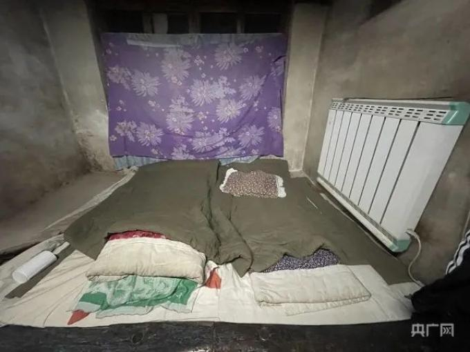 牛大爷和76岁的姐姐还有尚未成家的儿子一起生活。破旧的老房里,即使是大白天,房间里也比较昏暗,炕上冰凉,被子里很潮湿。当地政府免费发放的电暖气堂皇地挂在墙上。