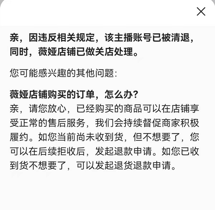 薇娅微博、抖音均被封号,淘宝店铺已“关店处理”